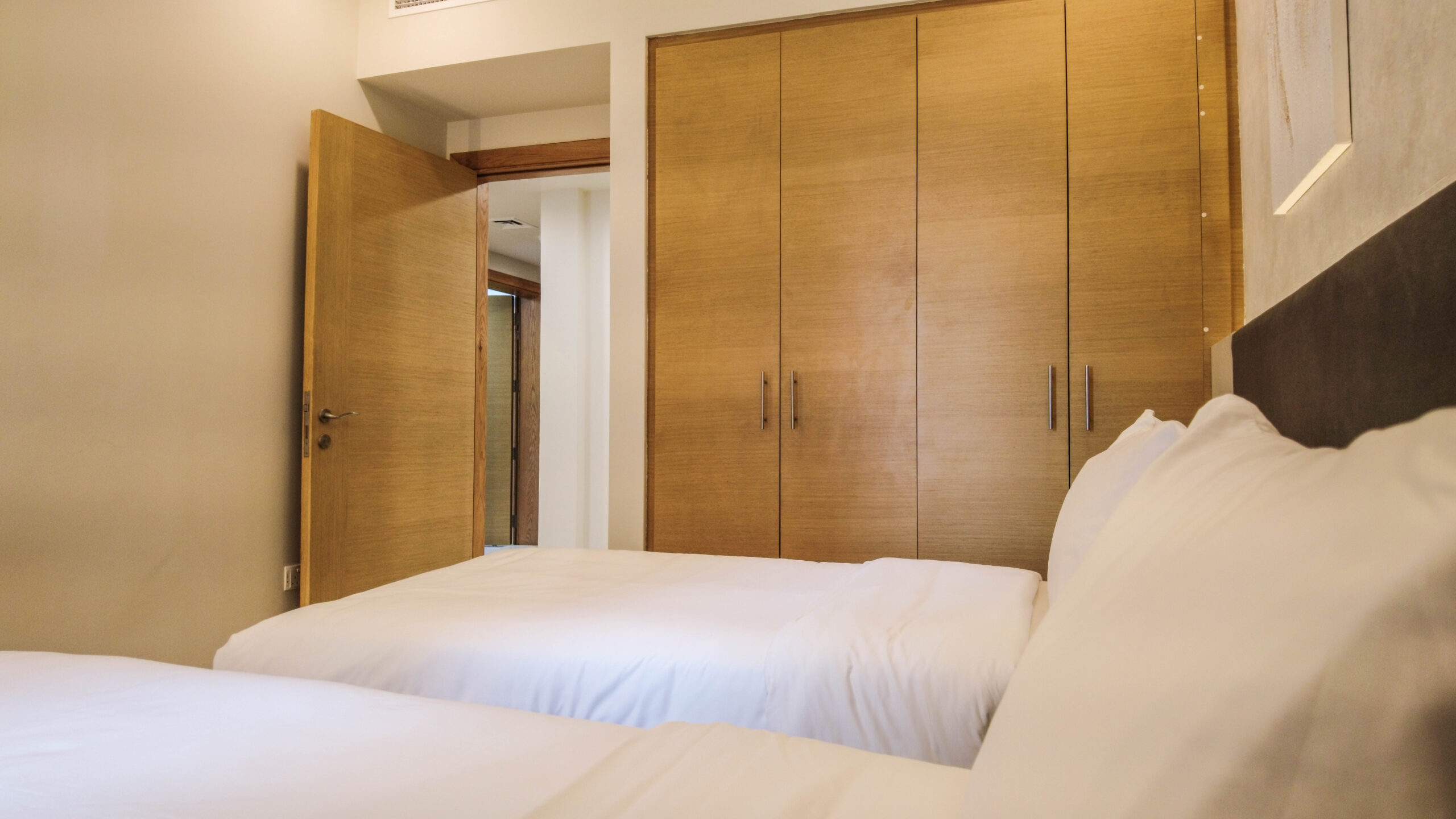 Perfect for families, this modern 2-bedroom apartment features a spacious living area, en-suite master, children’s room with twin beds, and a maid’s room. Just 400m from the Corniche, enjoy sea views, rooftop pool, gym, and 24/7 security—steps from World Trade Mall.
